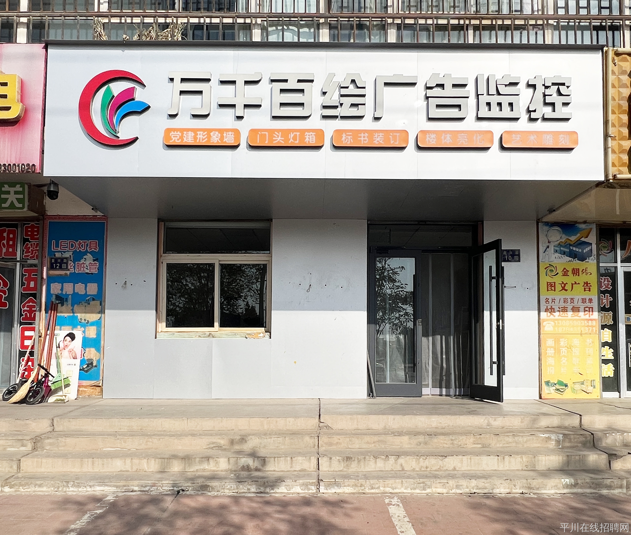 平川万千百绘广告、监控,成于2013年,在社会各界朋友的支持和帮助下,经全体员工近几年的自强不息、努力拼搏,使公司迅速的发展和壮大,成为一家以广告发布、户外大型喷绘、数码写真、标书装订、高速复印、大型雕刻、工艺牌匾、LED电子屏、安防监控等多种服务项目为一体的多元化综合性广告公司。